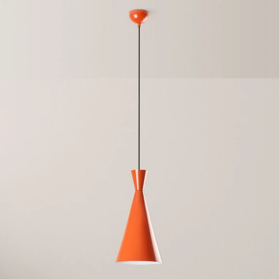 Den hengelampen Tom er en allsidig lampe som kan monteres enkeltvis eller i grupper for å belyse benker, bord og nattbord, og kan erstatte nattbordslampen. Den fargede lakken setter et vakkert preg på rommet. Takket være metallskjermen stråler lyset bare nedover og setter et effektfullt lyspreg. Lampen er utstyrt med en dimbar pære og kan dimmes via en dimmer i rominstallasjonen. Pære og dimmer er ikke inkludert i leveransen.