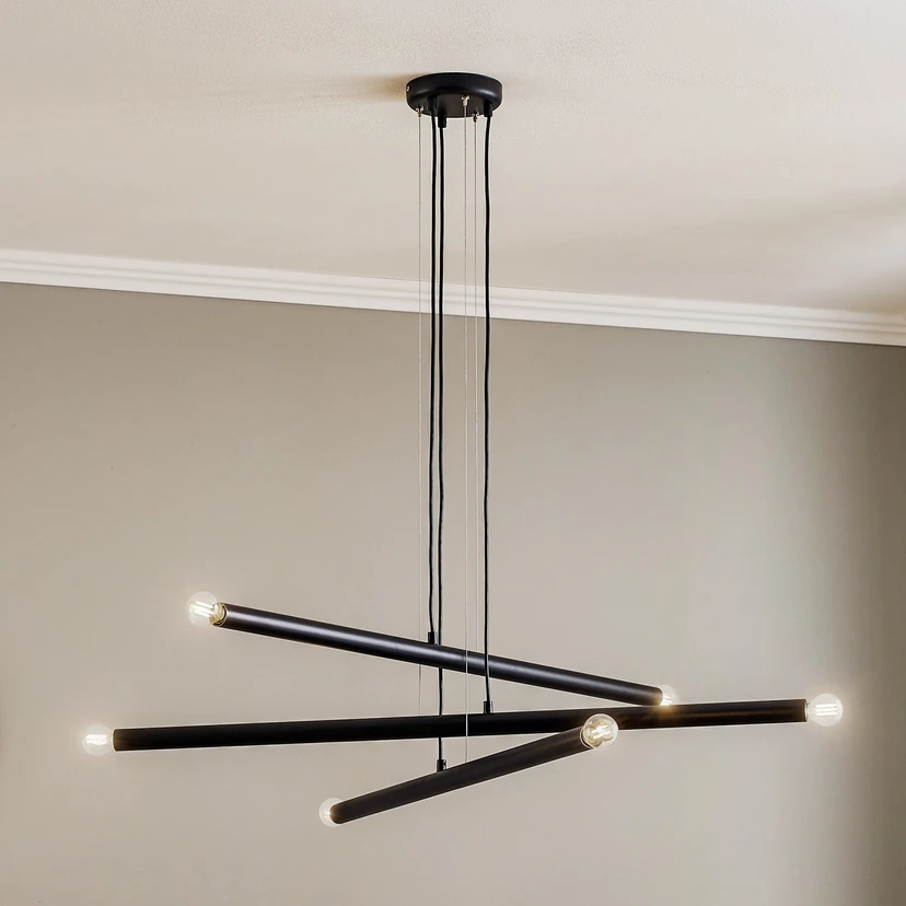 Hengelampen Tubo i svart kombinerer moderne design med funksjonell allsidighet. Den er laget av høykvalitets metall og passer perfekt inn i ulike romkonsepter, og er ideell for stuen, kjøkkenet eller spisestuen. Med sine seks lyskilder sørger den for en jevn og behagelig belysning som er perfekt både for koselige kvelder og inspirerende øyeblikk.