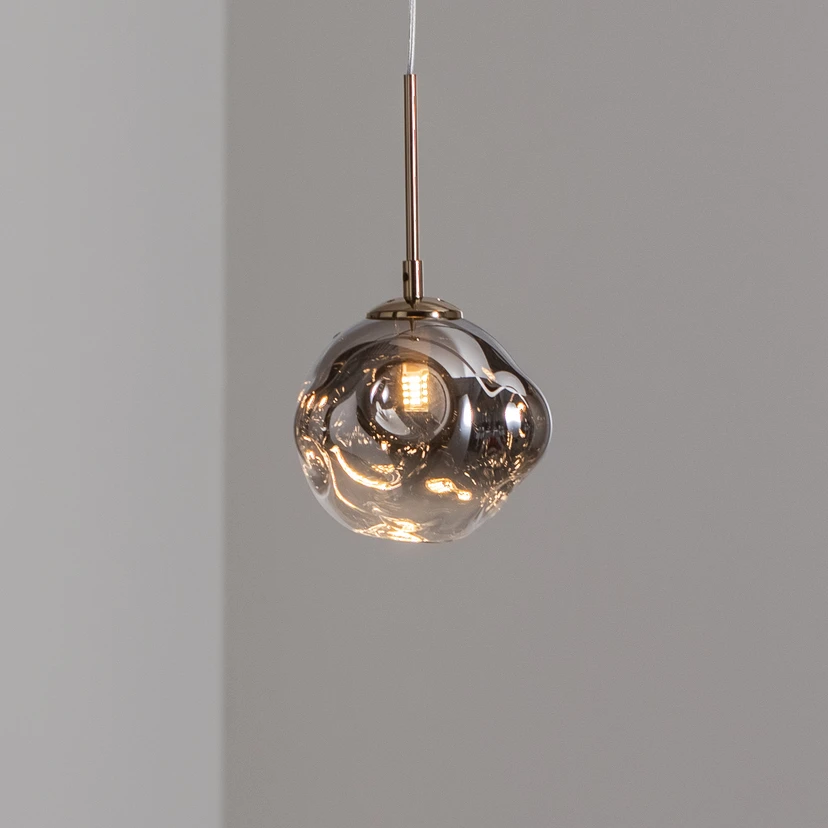 Herman pendellampe: eleganse med røykgråtonet og buet skjerm Opplev hvordan Herman pendellampe med sin gullfargede design og kunstferdig formede og røykgråtonede skjerm ikke bare forvandler rommene dine, men også humøret ditt. Lampen er produsert i Europa og representerer en moderne stil som passer sømløst inn i estetikken i stuer, spisestuer og gangarealer. Kombinasjonen av glass og metall tilfører et snev av eleganse til ethvert rom og skaper en atmosfære som kan virke både inspirerende og beroligende. Med Herman hengelampe kan du sette et tydelig preg på stil og atmosfære.