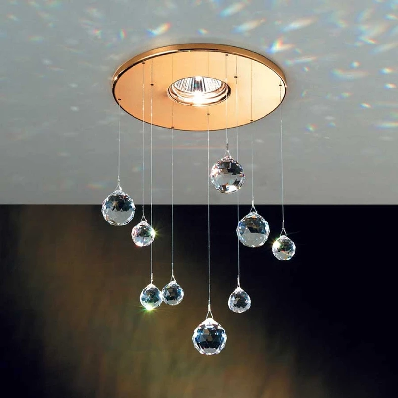 Den fasinerende innfellingslampen Feng Shui sørger for en skimrende stråleglans i hjemmet. Kuleformede swarovskikrystaller henger i tynne, nesten usynlige tråder i ulike høyder ned fra takfestet som er forgylt med 24 karat gull. Sammen med lyskilden på 50 watt skaper krystallene nydelige lyseffekter i hele rommet og får gjestene til å drømme seg bort. En elegant lyskilde som er mye mer enn bare en lampe.