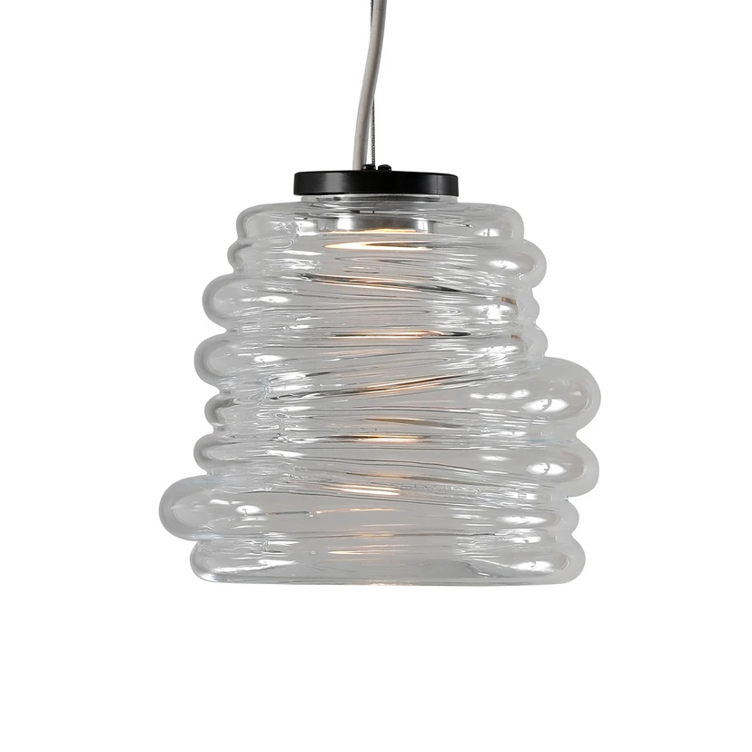 LED-pendellampe Bibendum med glasskjerm i en flytende karakter Pendellamper med glasskjerm er ofte enkle og stilrene i designet. Den anerkjente italienske arkitekten og designeren Paola Navone bryter med dette konvensjonelle konseptet med denne kreasjonen. Glasset i Bibendum-pendelen har ringformede kurver utover, noe som gir inntrykk av at materialet har smeltet og blitt presset sammen av sin egen vekt. Lysdiodene er plassert på undersiden av det øvre metalldekselet. Det varmhvite lyset brytes kraftig av glasset. Lysstyrken kan styres etter behov ved hjelp av en ekstern dimmer (ikke inkludert). Det spesielle utseendet og den behagelige lyseffekten gjør Bibendum til en stilfull lyskilde i eksklusive oppholds- og loungeområder. Bibendum er bare ett av mange objekter fra den italienske produsenten Karman som inspirerer med kreativitet, håndverk og uttrykksfullhet.