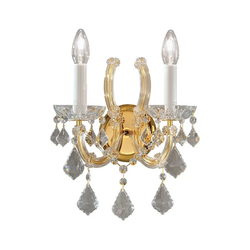 Denne vegglampe er designet i henhold til den kongelige stilen fra 1700-tallet. De buede armene og den runde veggbraketten av Maria Lousie er alle dekket med skinnende 24 karat gullblad. Elementer laget av klart, kuttet krystall i form av hengende dråper, plater under lampeholderne designet som stearinlys og kapper på armene gjør vegglampe til et glitrende høydepunkt.