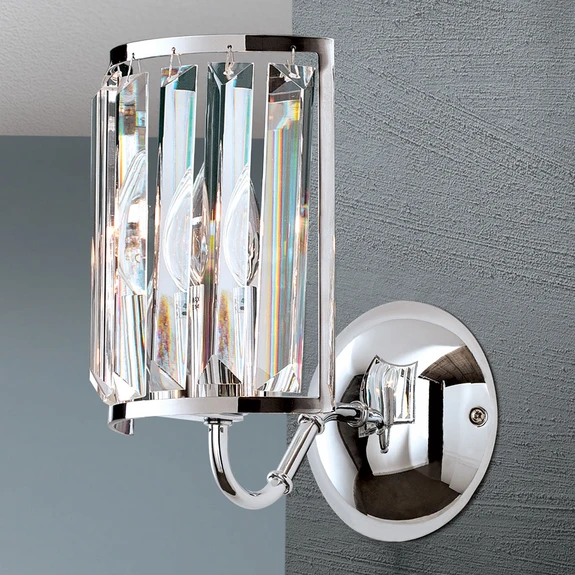 Når belysningen er slått på, brytes lyset som sendes av den anvendte belysningen i krystallene og reflekteres fantastisk. Den vakre glansen forsterkes av det forkromede metallet.