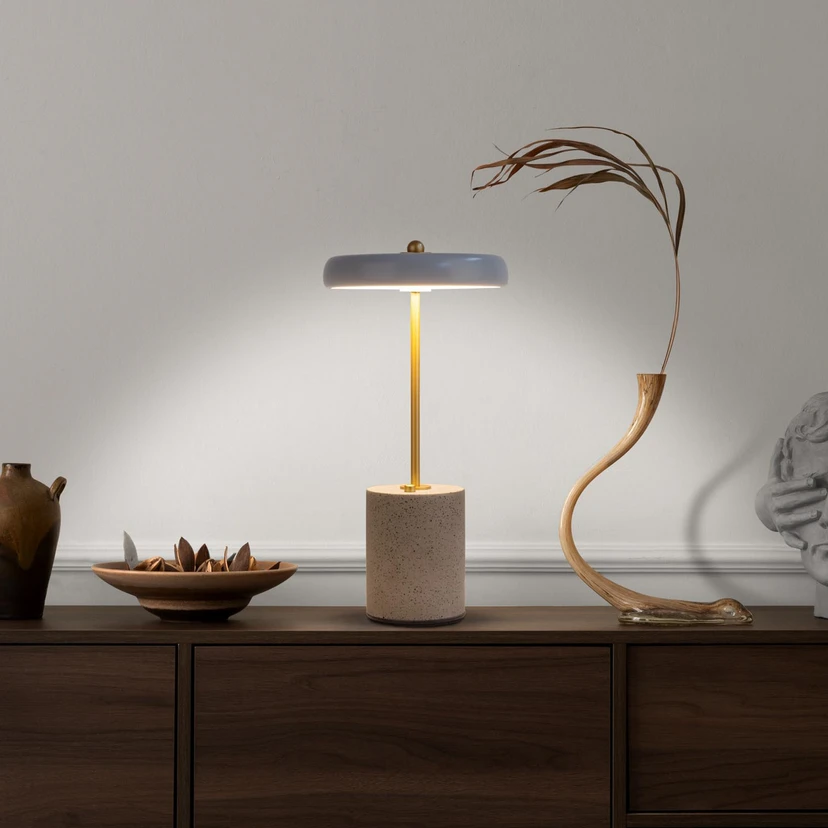 Varmhvit Universalhvit Dagslys LED-bordlampe Seta, batteri, sement, grå skjerm