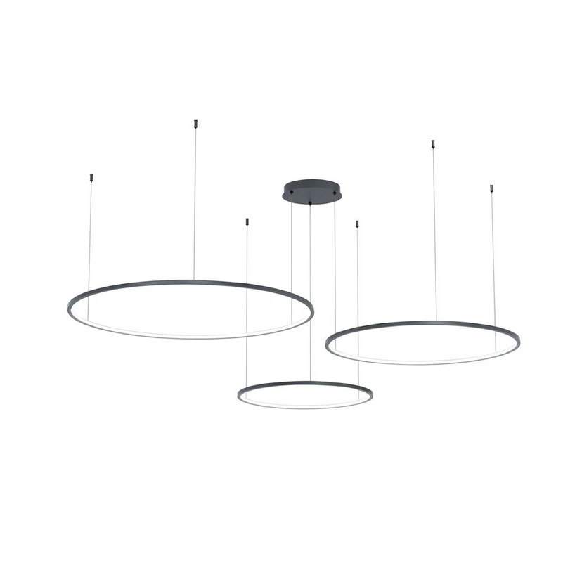 LED-hengelampe Saturno med 3 ringer og universelhvit lysfarge