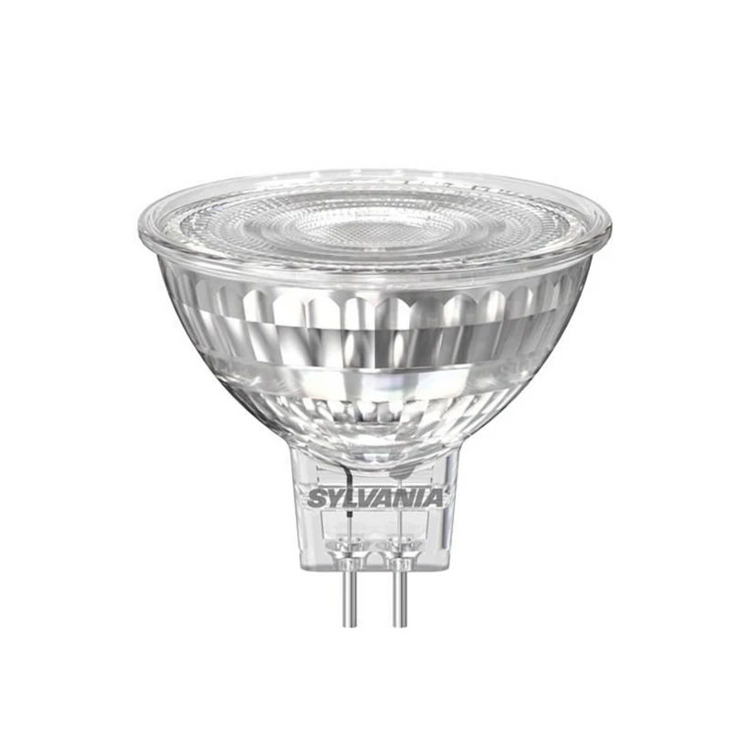 Denne GU5.3 MR16 LED-reflektorpæren i klart glass avgir dagslys i en vinkel på 36°. Eksternt dimbar.