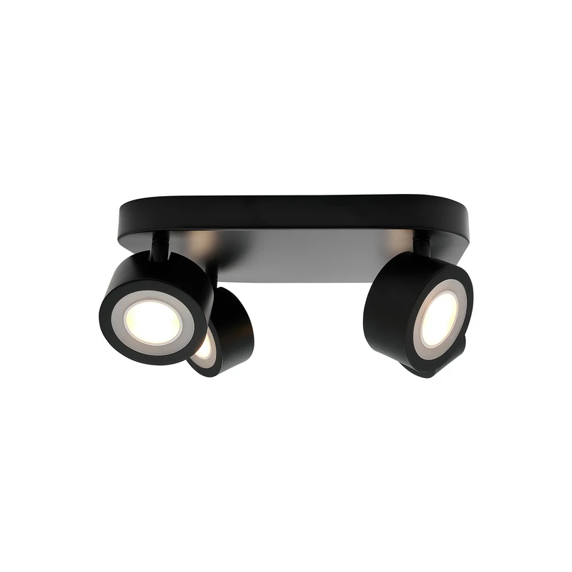 LED-taklampe Clyde, fire lys, firkantet, svart
