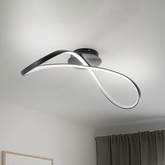 LED-taklampen Infinity i moderne design gir universelhvit belysning. Lampen er laget av høykvalitets metall og plast og passer perfekt inn i ulike oppholdsrom som stue, gang eller soverom. Den svarte fargen understreker den tidløse elegansen og gjør lampen til et stilig element i ethvert rom. Den fastmonterte LED-lyskilden bak det hvite dekselet sikrer en energieffektiv og jevn belysning. Kombinasjonen av design og funksjonalitet gjør LED-taklampen Infinity til et ideelt valg for moderne boligkonsepter.