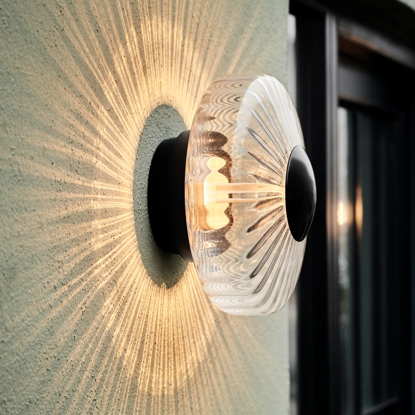 LED-vegglampe utendørs New Wave Optic, glass, Ø 26 cm, IP65