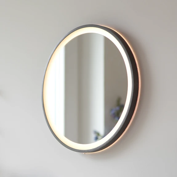 Glasspeilet VIDRO for veggmontering er utstyrt med en rund metallramme i kontrastfarge. Mellom speilflaten og rammen er det integrert varmhvite LED-er. Lyset fra disse sendes både fremover og bakover mot veggen. Strømforsyningen skjer via en medfølgende 5000 mAh powerbank. LED-veggspeilet VIDRO er beregnet for tørre innendørsområder, for eksempel ganger, soverom og garderober.
