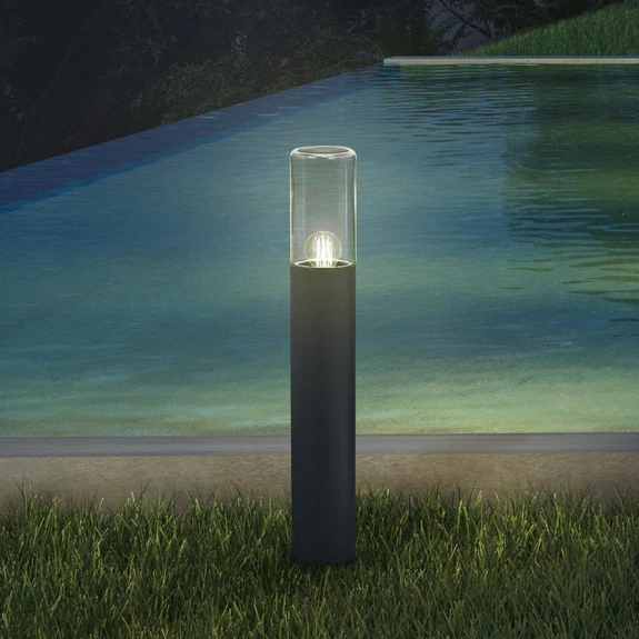 Endura Classic Figo sylinder stibelysning med sensor Stibelysningen Figo fra Endura Classic-serien har en sylindrisk form. Den er laget av rustfritt stål med en mørkegrå overflate og en skjerm av gjennomsiktig glass, og takket være den innebygde sensorteknologien gir den pålitelig lys på stier og innkjørsler når det er behov for det. Armaturen er utstyrt med en E27-sokkel, og lyskilden kan velges fritt, slik at lysfarge og lysintensitet kan tilpasses de respektive behovene. Sensorsystemdata: - Bevegelsesdetektorens rekkevidde 6 m - Deteksjonsområde 110° - Dagslyssensorens responslysstyrke < 30 lux - Lysets varighet kan justeres fra 5 sekunder til 6 minutter