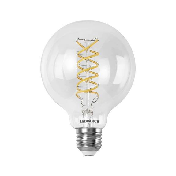 LEDVANCE SMART WiFi E27 LED-lampe Globe G95 Filament klar med 8W, Tunable White, for styring via WLAN gir dimbart lys med justerbar fargetemperatur for konvensjonelle armaturer med denne smarte E27 G95 LED-glidelampen Globe med klar glasspære. Bytte, dimming og kontinuerlig regulering av lysfargen fra varmhvit til dagslys skjer via en app på smarttelefonen/nettbrettet eller med talekommando. Koblingen til nettbrettet/smarttelefonen eller smartintegrasjonen skjer via WLAN takket være SMART WiFi-teknologien, uten behov for gateway eller bro. Spesielle funksjoner/kompatibilitet: - kan styres med LEDVANCE SMART WiFi-appen (gratis tilgjengelig for iOS og Android); muliggjør forhåndsinnstillinger og automatiseringer - styring via Google Assistant eller Amazon Alexa mulig - dimbar - lysfarge: hvitt lys med 2700 - 6500 K - nettverksprotokoll: WiFi