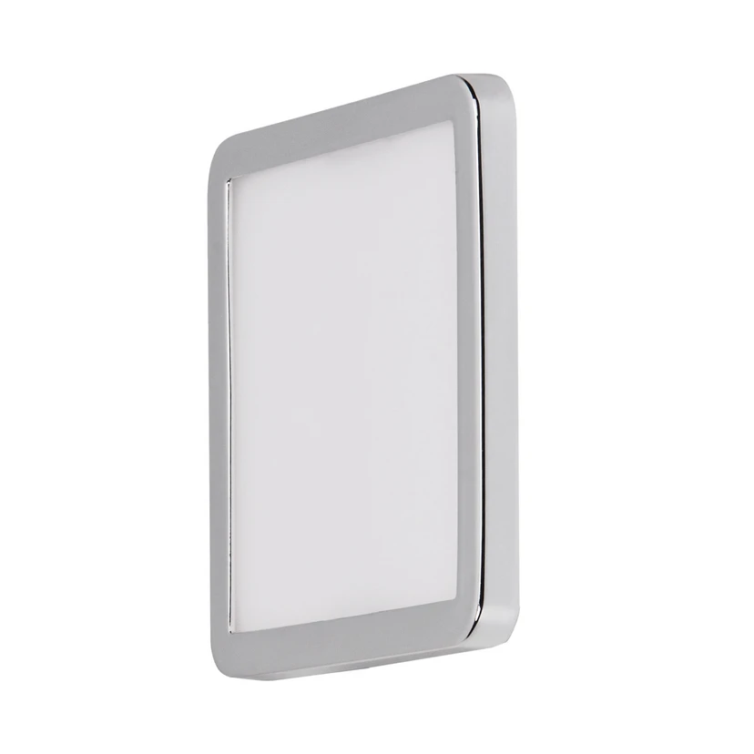 GX53 LED-lyskilde med 6 W, fargevekslende CCT Denne 6 W LED-pæren med GX53-sokkel brukes til å utstyre åpne GX53-fatninger. Pæren har en flat kropp med kromfarget ramme og matt diffusor, og kombinerer funksjonen som lyskilde og armatur. Ved å trykke på lysbryteren flere ganger i rask rekkefølge kan lysfargen endres mellom varmhvit og universalhvit.