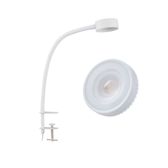 Takket være skrueklemmen kan klemmelampen Jyla plasseres på mange måter, det eneste som trengs er en stikkontakt i nærheten. Lampen kan for eksempel monteres på bord, hyller eller vinduskarm. Med den dreielige skruen kan klemmen tilpasses den individuelle tykkelsen på overflaten. Jyla har også en fleksibel arm, slik at lysretningen kan tilpasses individuelle behov. Det universalhvite lyset sørger for ideell belysning av rommet. Med det tidløse designet i hvitt passer klemmelampen enkelt inn i forskjellige oppholdsrom.
