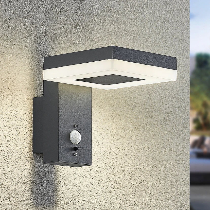 Kompakt LED solcellevegglampe Laira laget av aluminium med bevegelsessensor i antrasitt