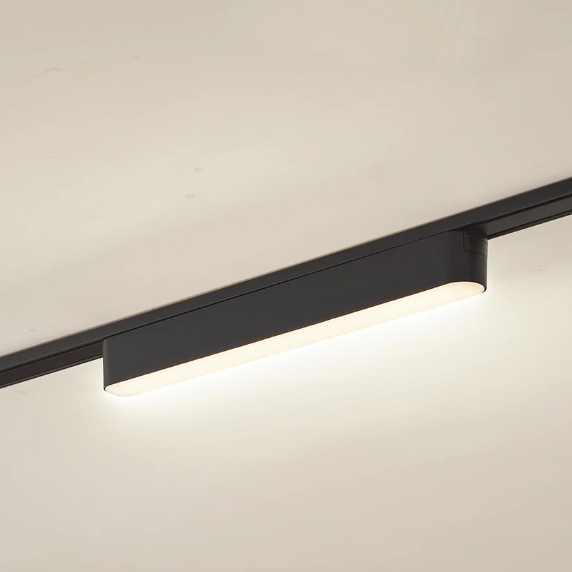 Moderne LED-armatur for Lumaro skinnesystem - med regulerbar lysfarge (CCT) og dimmefunksjon Lumaro LED-armatur er en berikelse for ethvert interiør. Med CCT- og dimbar funksjon gjør den det mulig å justere lysfargen individuelt for å skape ønsket atmosfære - fra varme toner for en koselig kveldsstemning til kjøligere nyanser som fremmer konsentrasjon og produktivitet. Begge funksjonene styres med en fjernkontroll, som ikke er inkludert i leveransen, men som kan kjøpes separat via tilbehøret. Den moderne designen i elegant svart føyer seg sømløst inn i moderne møbleringskonsepter. Lumaro LED-skinnesystemet kan integreres i skinnesystemet med samme navn og muliggjør en ukomplisert og enkel installasjon. Det gir også utallige designmuligheter med ekstra skinnesystem og belysningselementer som gir maksimal fleksibilitet og kan utvides i ettertid - må kombineres med 48 V Lumaro LED-driver for å fungere Vær oppmerksom på at Lumaro skinnesystem kun er kompatibelt med tilbehør fra Lumaro-serien. For å unngå forveksling med andre systemer, må du kun kombinere tilbehør og skinnesystemer fra serien med samme navn.