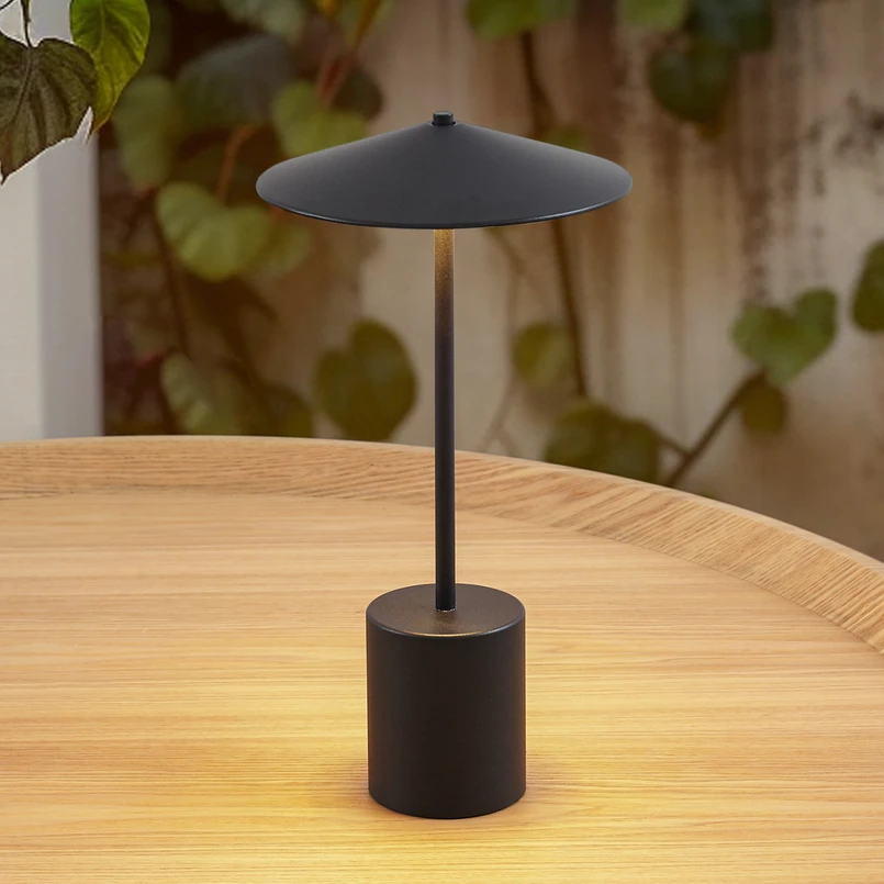 Lindby LED oppladbar bordlampe Ayva, svart, aluminium, IP44