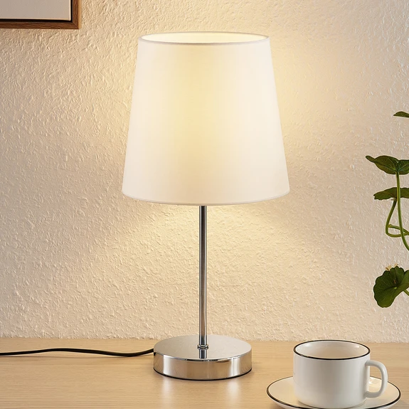 Lindby Leza bordlampe krom, hvit skjerm Produsent