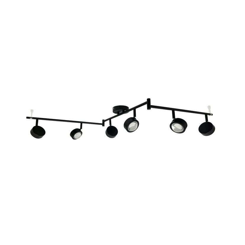 Dimbar Jyla-spotlight med seks justerbare skjermer Jyla takspotlight med seks lys er laget av jern og gir omgivelsene et sofistikert preg med sitt svarte eksteriør. Samtidig smelter den uanstrengt inn i ulike oppholdsrom takket være sin diskrete design. Den er for eksempel ideell som lyskilde i gangen, på kjøkkenet, i stuen eller i spisestuen. Rammen kan justeres på tre steder, og de runde skjermene kan også vippes og dreies fleksibelt. På denne måten kan lyset tilpasses og rommet belyses optimalt. De medfølgende GX53-lyskildene har en buet linse og ser derfor ut som halvkuler av glass. Lyset kan slås av og på som vanlig ved hjelp av en veggbryter. Takket være 3-trinns dimmeteknologi med integrert av-funksjon kan den også dimmes til tre ulike lysstyrkenivåer ved å trykke på bryteren flere ganger: 100 %, 50 % og 25 %.