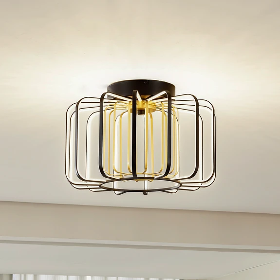 Lucande LED-taklampe Birger, Ø 39,5 cm, svart/gull