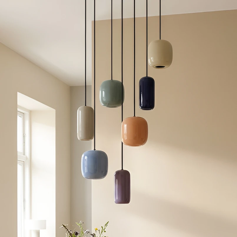 Sju-lys Narion rondel - en iøynefallende pendellampe for innendørs bruk Denne lampen er også perfekt for hjemmet ditt. Smakfull design og en overbevisende følelse av å bo kjennetegner armaturen i Lucande-merkevarekvalitet. Med sitt stilrene utseende kompletterer armaturen belysningskonseptet i ethvert rom på en effektiv måte. Du kan justere lysstyrken etter eget ønske ved hjelp av en ekstern dimmer (medfølger ikke), den er tilgjengelig i blått, oransje, mørkeblått, lilla, gult, beige og grønt og imponerer med kvaliteten på metallet som er brukt. Lampen passer perfekt inn i ethvert rom og skaper en koselig atmosfære. Pærer med GU10-sokkel er nødvendig for å få fatningen til å fungere. Interiørlampens stilige utseende gir rommene dine en vakker atmosfære som praktisk talt kan harmonere med din eksisterende innredning. Denne lampen utstråler en herlig atmosfære.