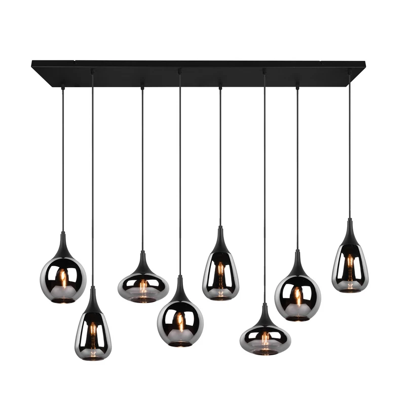 Lumina pendellampe, 8-lys, svart/krom, glass