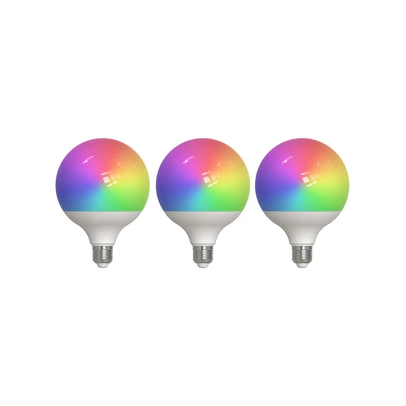 Intelligent, WLAN-integrert LED-lyspære med E27-sokkel, kuleform, i et praktisk sett med 3 stk. Denne lyspæren er laget av plast og har en matt overflate. Den kan også kobles til WLAN og styres ved hjelp av den gratis Tuya-appen (tilgjengelig for iOS og Android). Den praktiske RGB-funksjonen gjør at lyskilden kan lyses opp i sterke farger. CCT-funksjonen kan også brukes til å variere lysfargen fra varmhvit til dagslyshvit. Lyskilden leveres i et praktisk sett med 3 stk. og kan også styres ved hjelp av LUUMR APP. Denne er tilgjengelig for både Android og Apple og kan enkelt lastes ned på https://play.google.com/store/apps/details?id=luumr.app&hl=en_US eller https://apps.apple.com/de/app/luumr/id6470302637