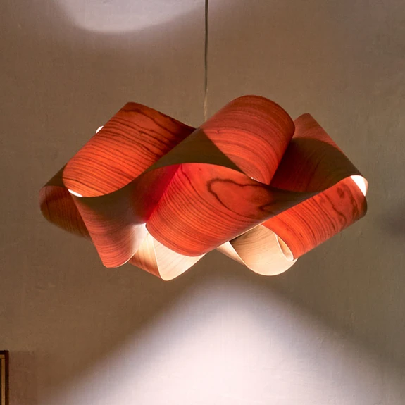 Swirl er en fryd for øyet med sine virvlende og snurrende folder, hvis vridde rotasjon er et sensuelt mesterverk. Swirl er designet av Ray Power og er en vellykket pendellampe med en nøye gjennomtenkt og modellert form. Powers design er vanligvis basert på geometri og hans forkjærlighet for å skape tredimensjonale former av flate materialer (trefiner).
