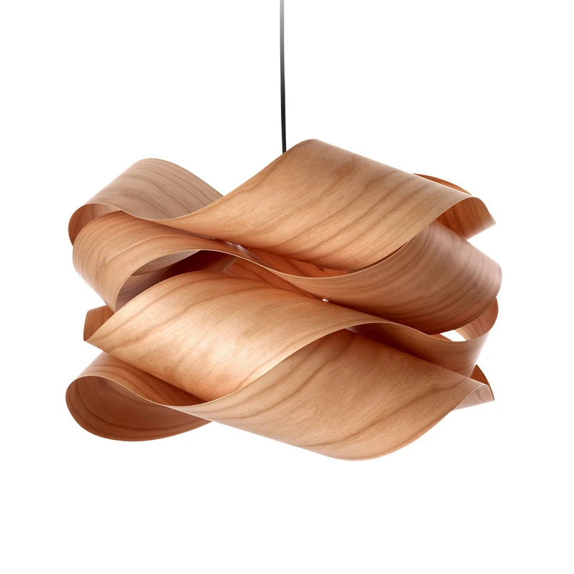 Hengelyset Link ser ut som flere bølger som løper oppå hverandre. Den organiske vibrasjonen og fibrene i trefineren, som kan sees enda tydeligere når den er slått på, gjør pendellampe til et absolutt blikkfang av naturlig skjønnhet. Lyskilden er skjult inne i skyggen; lyset skaper en komposisjon av skygge og lysstyrke med de gjennomskinnelige finerbåndene. Med det dyktige samspillet mellom behagelige lyseffekter og naturlighet, skaper Link en varm, koselig atmosfære i private stuer og offentlige områder.