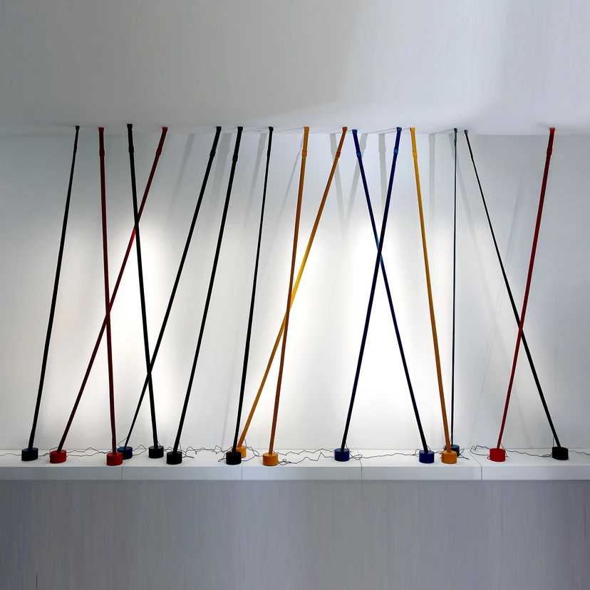 Elastica LED-gulvlampe som en stripe av fleksibelt stoff Elastica er ikke bare en lyskilde, men også et kreativt innredningselement. Armaturen er et fleksibelt og tøyelig stoffbånd som er utstyrt med en LED-stripe på den ene siden. Båndet strekkes mellom den runde motvekten på gulvet og taket, og takket være fleksibiliteten er det mulig med ulike takhøyder eller vinklede løp fra 250 til 320 cm. For å slå lyset av og på er det bare å trekke kort i båndet, mens man kan dimme lyset ved å holde det inne lenger. Konseptet til denne tilpasningsdyktige og inspirerende lampen kommer fra Studio Habits, en internasjonalt aktiv, tverrfaglig organisasjon. Produsenten er det italienske selskapet Martinelli Luce - hedret med ADI Design Index 2020 og iF Design Award 2020
