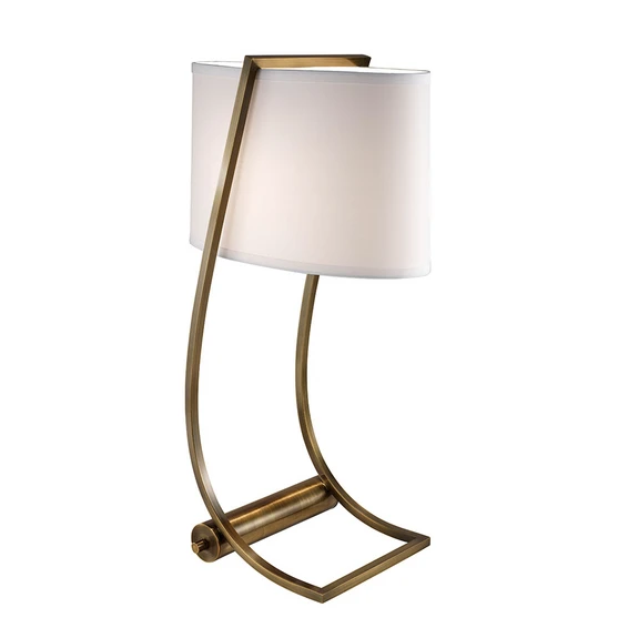 Bordlampen Lex med messingstell og hvit skjerm i bomull viser seg å være en multifunksjonell lyskilde, som ikke bare garanterer en stemningsfull detaljbelysning i ethvert moderne boligmiljø, men som også kan brukes som tilslutning til moderne mobil-teknologi som smarttelefoner, nettbrett etc. Den integrerte minnepenn-porten på baksiden av foten gjør dette mulig - en optimal skrive- eller nattbordslampe!