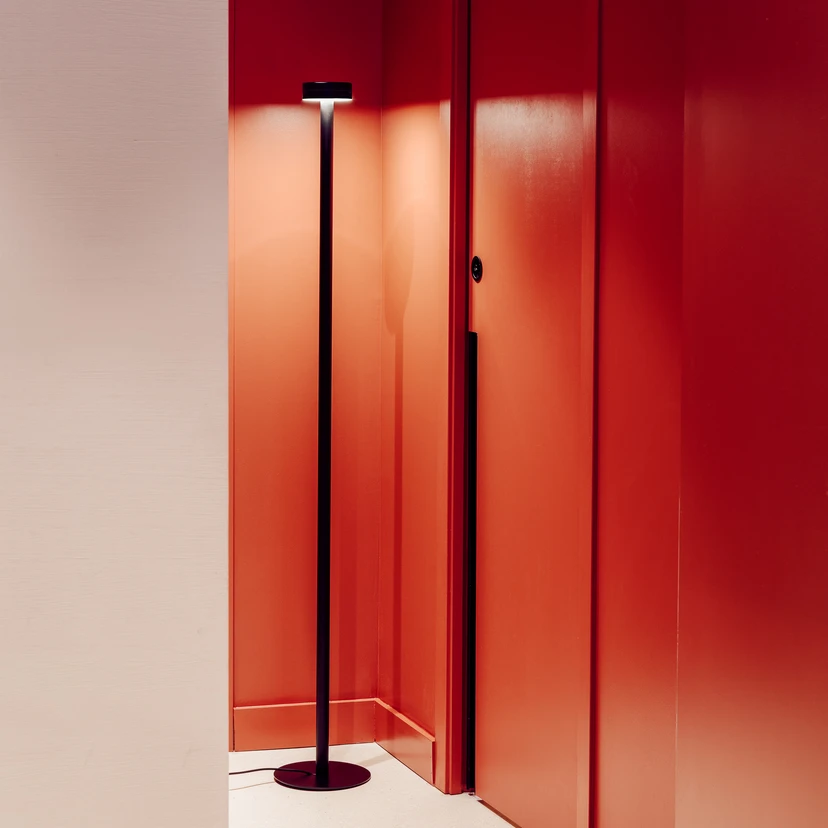 Minimalistisk designergulvlampe Peak Lane Gulvlampen Peak Lane har en design som bevisst unngår pompøse dekorasjoner og ville farger. Francesc Rifé eksperimenterer her med rette linjer og sylindriske former helt i svart, uten at armaturen tar over hele interiøret med sin tilstedeværelse. Det minimalistiske uttrykket trekker oppmerksomheten mot selve lyskilden. LED-lampen som er skjult i lampeskjermen, sender sitt varmhvite lys nedover og lyser opp en del av gulvlampens stående rør, noe som gir en vakker effekt. Lyskilden slås på og av med fotbryteren som er festet til strømkabelen. Ved behov kan denne også erstattes av en bryter med integrert dimmerfunksjon (se tilbehør).