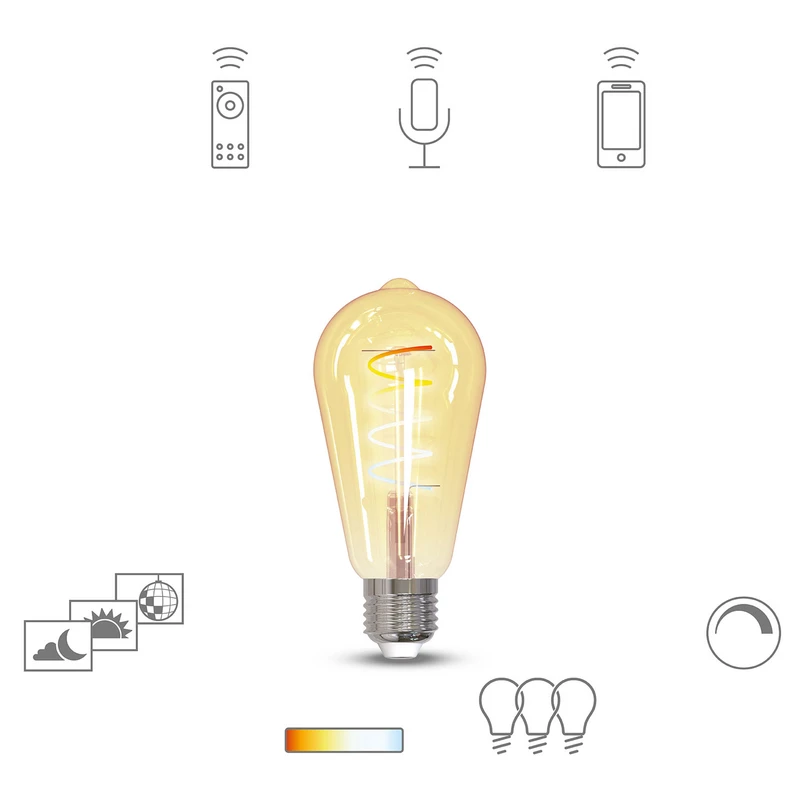 Dekorativ og smart kontrollerbar - den moderne LED-lampen med E27- fatning gir atmosfærisk lys fra varmhvit til dagslys. Kan styres på forskjellige måter, for eksempel via en fjernkontroll, en stemmeassistent eller en app.