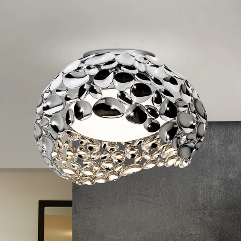 Skinnende forkrommet Narisa LED-taklampe Narisa LED-taklampe er en ekte perle i moderne hjem, selv når den ikke er tent. Den ringformede skjermen beskriver en vakker bølge og består av mange metallelementer i ulike størrelser som er formet som skjeer. På innsiden er det en stor akrylskjerm som rommer fem utskiftbare LED-lamper med G9-sokkel. Det varmhvite lyset avgis uten å blende og gir ikke bare en fantastisk allmennbelysning, men skaper også flotte reflekser i kombinasjon med det blanke forkrommede metallet.