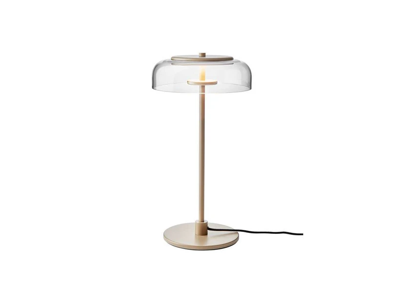 LED-bordlampen Blossi kombinerer skandinavisk eleganse med funksjonell belysning. Den er laget av metall med gullfarget finish og munnblåst glass, og gir stilfulle aksenter i stuer og spisestuer. Den integrerte LED-lyskilden gir energibesparende, varmhvitt lys med en fargetemperatur på 2700 K og en utmerket fargegjengivelse på 90 Ra.
