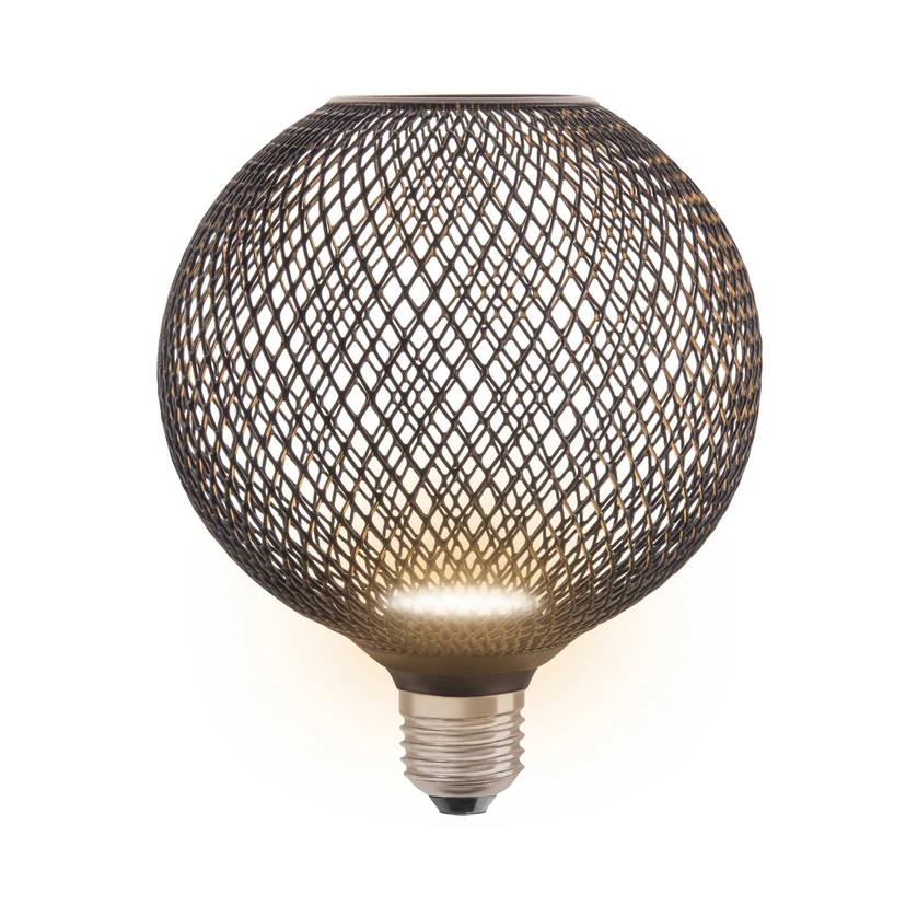 LED-pære Decor LED Flat Globe E27 3,5W Denne LED-pæren med flat lampe i metallhus er designet for designformål og er derfor ideell for bruk i skjermløse armaturer. Det kuleformede metallhuset med svart finish ser ut som en lampeskjerm og kan ikke fjernes fra lampen.
