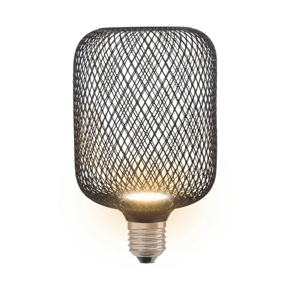 LED-pære Decor LED Flat Square E27 3,5W Denne LED-pæren med flat lampe i metallhus er utviklet for designformål og er derfor ideell for bruk i armaturer uten skjerm. Metallhuset i sylindrisk form med svart finish ser ut som en lampeskjerm og kan ikke fjernes fra lampen.