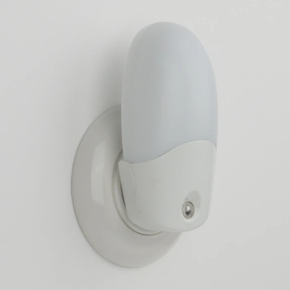 Sikkerhet i mørket med Oval nattlampe Oval LED-nattlampe fungerer som orienteringshjelp i mørket og er utstyrt med en skumringssensor. LED-lyset tennes automatisk når skumringen faller på, og lyset slukkes når det er tilstrekkelig dagslys. Nattlampen kan bli sittende permanent i stikkontakten. Oval er et ideelt orienteringshjelpemiddel for å gå trygt i mørket.