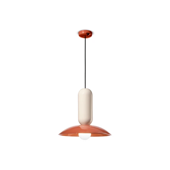 Tofarget keramisk pendellampe Pau Pendellampen Pau gir et eksklusivt inntrykk: Det visuelle fokuset ligger på utformingen av skjermen og opphenget i ulike farger. Denne fargekontrasten gir Pau-pendellampen, som egner seg utmerket som omgivelses- eller områdebelysning, et svært friskt uttrykk. Også et utmerket valg som bordbelysning - eksternt dimbar - produsert i Italia
