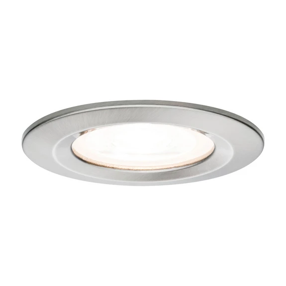 Rund Nova LED-spotlight med IP44-beskyttelse og trippel dimmer Nova innfelt LED-spotlight er en rund LED-spotlight som enkelt monteres i taket ved hjelp av festefjærer. Selv ved gjentatt montering og demontering forblir taket uskadet. Spotlighten er utstyrt med en utskiftbar LED-lyskilde med GU10-sokkel og avgir varmhvitt lys nedover i rommet. En integrert 3-trinns dimmer kan aktiveres og styres med en vanlig lysbryter. Nova er laget av aluminium. IP44-beskyttelsen forhindrer inntrengning av vannsprut.