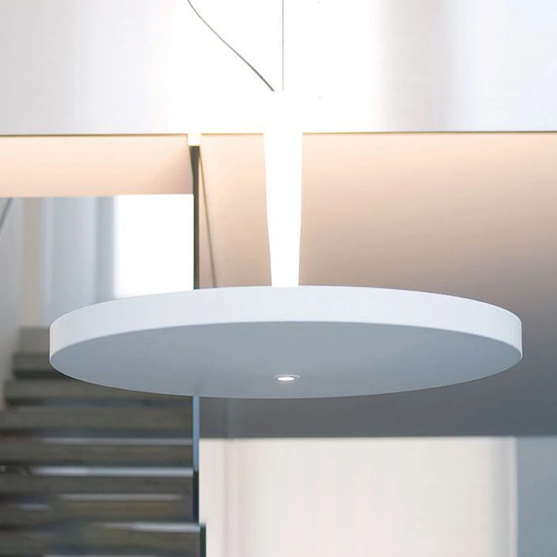 Equilibre Halo S3 pendellampe - Design av Luc Ramael Equilibre Halo S3 pendellampe kan brukes til belysning på mange områder i private og kommersielle rom. Pendellampen med skjerm av lakkert aluminium gir indirekte belysning, ettersom skjermen er lukket nederst og utstyrt med en rotasjonsstøpt skjerm av polyetylen øverst. Pendellampen Equilibre Halo S3 er designet av Luc Ramael. Den belgiske designeren skaper møbler og lamper som fremstår som bruksgjenstander uten unødvendige dikkedarer. Han har allerede vunnet flere nasjonale og internasjonale priser for designene sine. Equilibre Halo S3-pendelen er produsert av den italienske belysningsprodusenten Prandina. Prandinas belysningskreasjoner kjennetegnes av høy kvalitet. Equilibre Halo S3-pendelen er et unntak med sin metallskjerm, ettersom de fleste av Prandinas lamper er utstyrt med en munnblåst glasskjerm. Prandina ble grunnlagt i 1982 av Sergio Prandina. De samarbeider med kjente designere og arkitekter over hele verden.