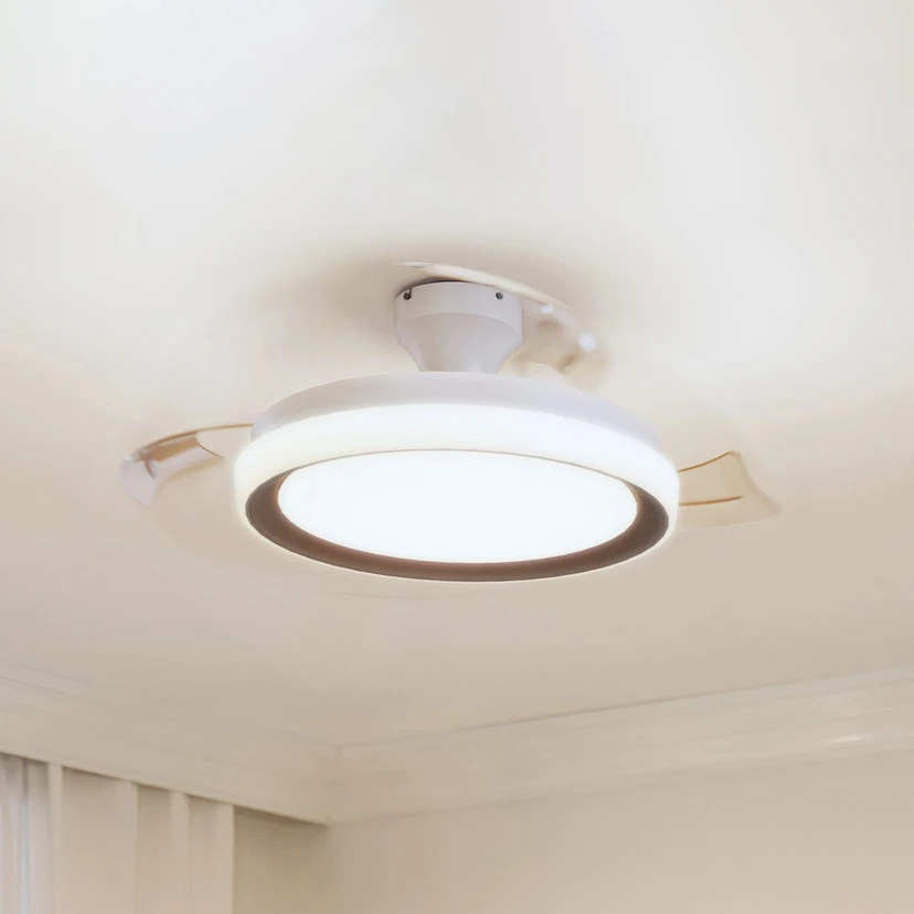 LED-takviften Bliss med effektiv LED-lys gir fleksibel belysning og en frisk bris. Viften leveres med en fjernkontroll som kan brukes til å velge mellom tre lysfarger, stille inn sommer- og vinterfunksjonen på viften og velge mellom seks hastigheter. I tillegg kan du velge mellom to timerfunksjoner for belysningen (2 eller 4 timers drift).