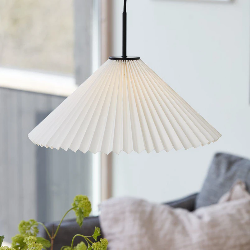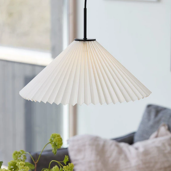 Fascinerende origamidesign - pendellampen Polly Pendellampen Polly er et delikat uttrykk i origamidesign. Papiret har en matt overflate med vakre, tydelige folder og er lett. Papirmaterialet som er brukt, er FSC-sertifisert og festet til et metalldeksel med svart, matt overflate. For å harmonisere helhetsinntrykket er tekstilkabelen også svart og ender i et matt, svart takfeste.