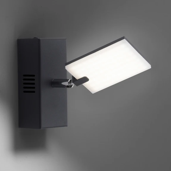 PURE Mira - rektangulær LED-vegglampe med justerbart lyselement, lysstyrke og fargetemperatur kan reguleres med fjernkontroll LED-vegglampen Mira i aluminium er en allsidig lyskilde for moderne interiør og gjør seg spesielt godt i lesekroken eller ved siden av sengen. Det kvadratiske veggfestet med integrert driver holder et dreibart og svingbart lyspanel med en kort leddarm, som er utstyrt med et LED-kort bak et satenert akryldeksel på den ene siden. Lysstyrken og fargetemperaturen kan tilpasses situasjonen ved hjelp av den medfølgende fjernkontrollen. Hvis Mira betjenes via veggbryteren eller vippebryteren på armaturen, er den siste aktive innstillingen tilgjengelig igjen etter at den slås på igjen (minnefunksjon).