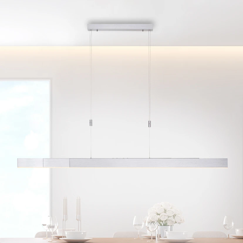 Pure Moto LED hengelys imponerer med sitt moderne design og praktiske funksjoner: Lengden og opphenget kan justeres raskt og enkelt. Det er også mulig å justere fargetemperaturen fra varm til universell hvit og kontinuerlig dempe lyset. Lysforholdene kan derfor tilpasses optimalt til de respektive behov og stedsforhold. Når pendellyset er slått på, bruker minnefunksjonen den sist valgte lysinnstillingen. Den styres via den medfølgende fjernkontrollen og den integrerte berøringsflaten. Pure Moto er ideell for belysning av stuen eller spisebordet.