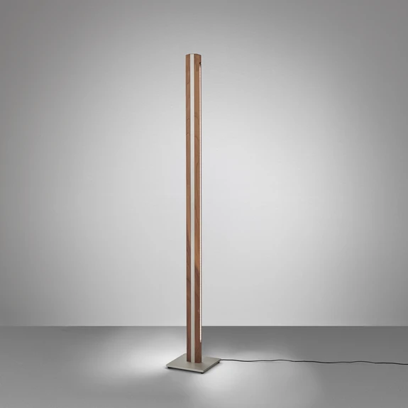 Dimbar Elis LED-gulvlampe i valnøtt med LED-stripe i matt nikkel Eleganse og funksjonalitet smelter sammen i Elis LED-gulvlampe, et mesterverk av moderne design som skaper en varm og innbydende atmosfære i enhver stue eller spisestue. Den harmoniske kombinasjonen av valnøtt og moderne nikkelfinish gir denne gulvlampen en tidløs estetikk som passer sømløst inn i ethvert interiør. Med en integrert LED-gulvlampe har Elis ikke bare imponerende lang levetid, men også høy energieffektivitet, noe som reduserer behovet for hyppige pæreskift og samtidig bidrar til å redusere energiforbruket. Den integrerte dimmefunksjonen gjør det mulig å justere lysstyrken etter behov for å skape den perfekte lysstemningen til enhver tid på døgnet og til enhver aktivitet. Lyset spotlightes både forover og bakover. Takket være den integrerte minnefunksjonen hentes den sist valgte lysinnstillingen frem igjen når lampen slås på. Gulvlampens overflate er omhyggelig bearbeidet for hånd. Elis er en investering i langvarige belysningsløsninger som både er stilige og funksjonelle. ALS gulvlampe er et allsidig tilbehør som setter et spesielt preg på ethvert rom, enten det er i et koselig lesehjørne eller som aksentbelysning på sosiale kvelder.