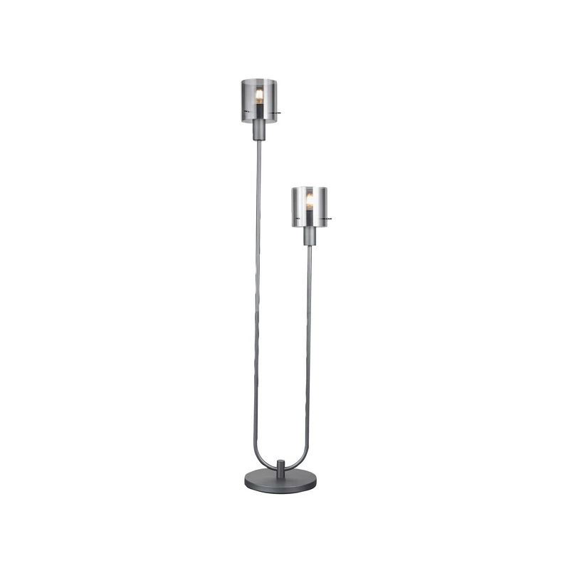 Riffelini gulvlampe, høyde 152 cm, røykgrå, 2-lys, glass