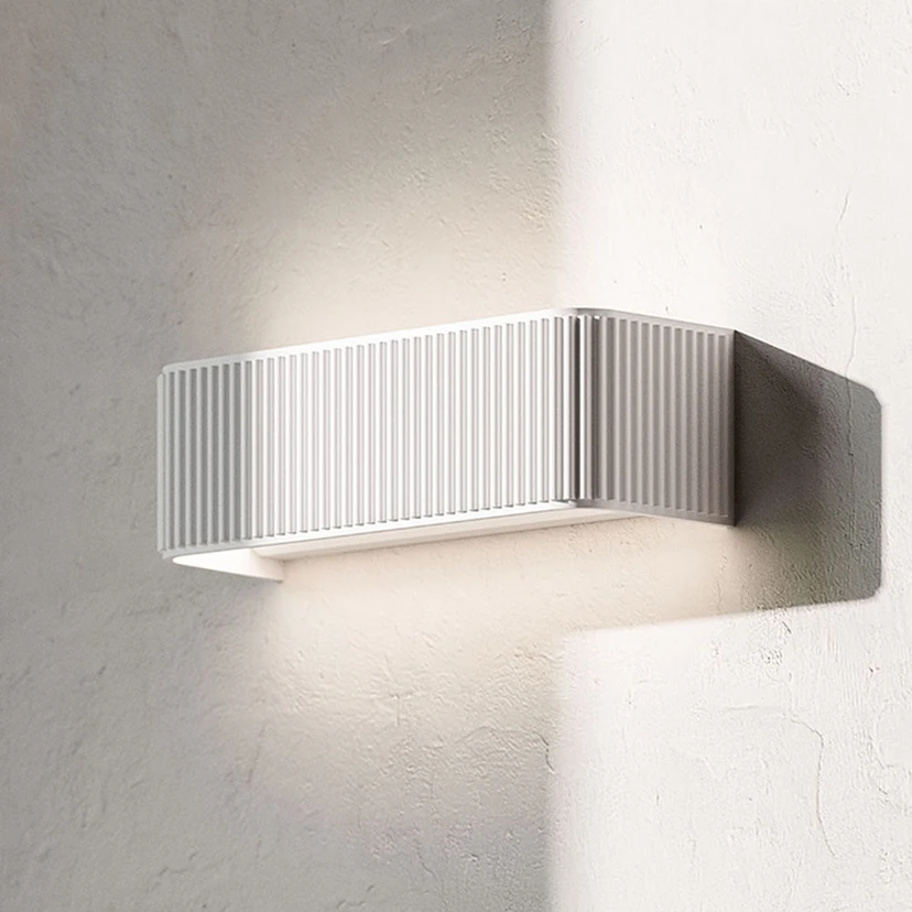 Dresscode LED-vegglampe med opp- og ned-effekt Designeren Giovanni Lauda har skapt Dresscode-vegglampen i robust aluminium. Den kjennetegnes av det overliggende mønsteret av fine, halvsirkelformede lameller som nesten ser ut som de fine foldene på et klesplagg. De varmhvite power-LED-ene lyser gjennom armaturens øvre og nedre åpninger og skaper en indirekte belysning som går opp og ned. LED-lampene av høy kvalitet er også kombinert med høy fargegjengivelse, noe som gjør at omgivelsene virker spesielt naturlige. Takket være den enkle og stilrene designen passer Dresscode inn i mange ulike innredningsstiler uten å skille seg for mye ut fra omgivelsene. Vegglampen produseres i Trentino i Nord-Italia av Rotaliana. Selskapet imponerer med sine innovative og moderne løsninger. Den unike kolleksjonen av ulike typer og design stammer fra de mange ideene til de internasjonale designerne som Rotaliana samarbeider med.
