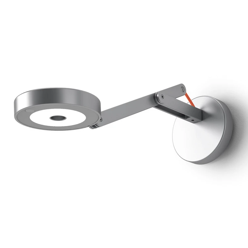 String LED-vegglampe med justerbar arm og skjerm String-vegglampen er utviklet av Dante Donegani og Giovanni Lauda og kombinerer moderne funksjoner med et industrielt, teknisk utseende. Takket være den lagrede aluminiumsarmen, hvis vinkel kan justeres ved hjelp av et elastisk stoffbånd, er String et kreativt blikkfang. Skjermhøyden kan justeres på denne måten. Orienteringen kan også justeres ved hjelp av et leddfeste, slik at String kan brukes som direkte eller indirekte lyskilde. Den integrerte trykkdimmeren gjør det også mulig å justere lysstyrken. Allsidigheten er en av String-vegglampens sterke sider - fra leselampe over nattbordet til stemningsfull belysning i stuen.