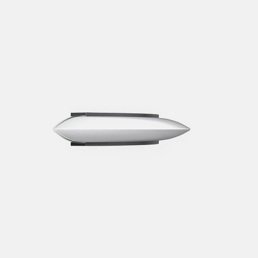 Ring of Fire LED-vegglampe laget i Tyskland er en høykvalitets lyskilde for innredning av moderne leiligheter, hoteller og forretningslokaler. Den består av en armatur laget av anodisert presstøpt aluminium og en elliptisk, halvsirkelformet utstikkende diffusor laget av håndblåst opalglass. Lyset fra LED-ene er spredt og gir homogen tilleggs- eller generell belysning. De klare glassdekselpanelene, som bryter lyset, skaper også en dekorativ effekt på veggen.